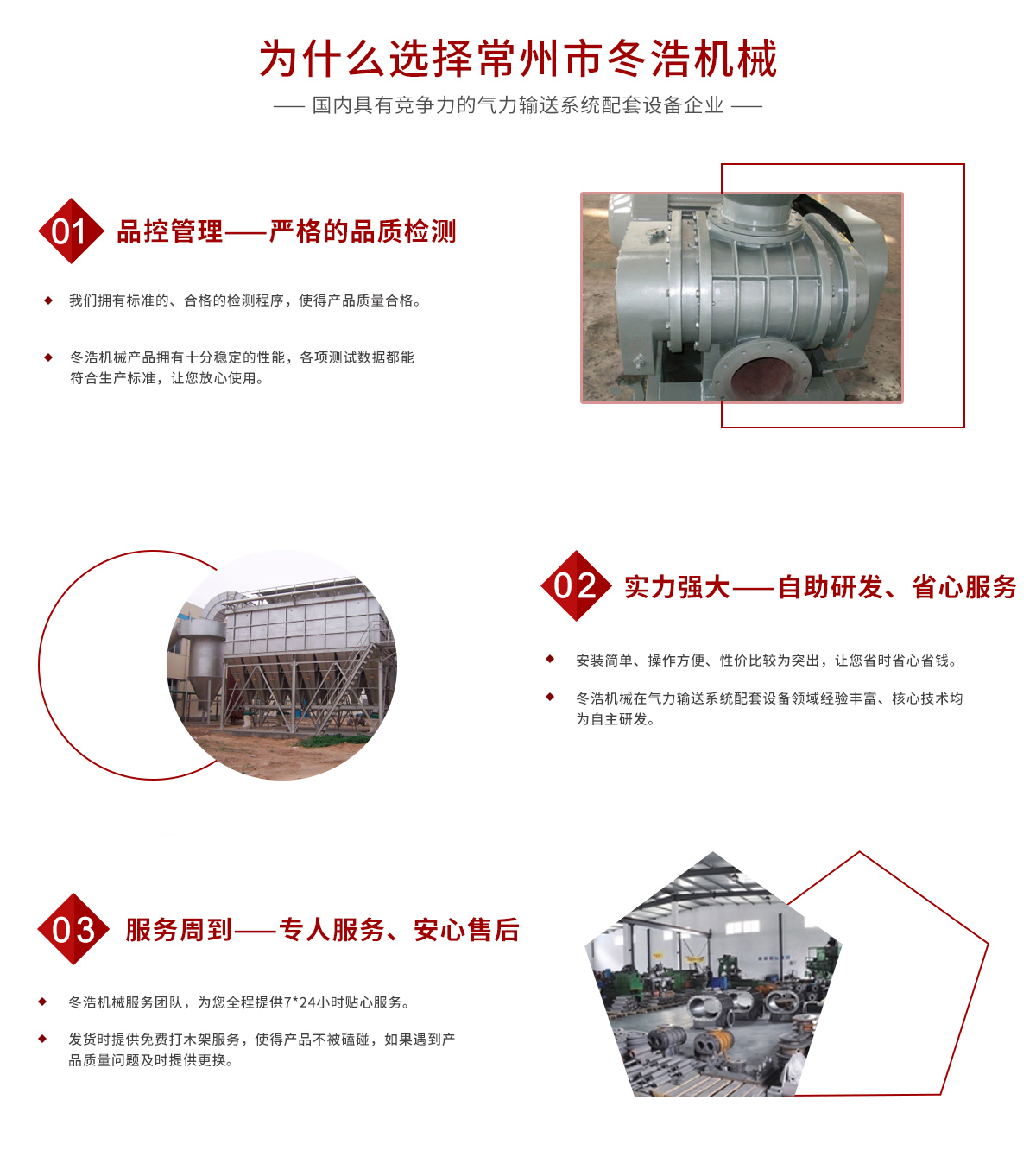 常州市冬浩機(jī)械有限公司占地面積5000平方米,擁有一支專業(yè)的科技研發(fā)團(tuán)隊(duì)和配備專業(yè)的生產(chǎn)設(shè)備。專業(yè)致力于氣力輸送系統(tǒng)配套設(shè)備的研發(fā)、生產(chǎn)及銷售。產(chǎn)品在實(shí)際應(yīng)用中不斷創(chuàng)新、不斷升級,現(xiàn)已對接實(shí)現(xiàn)自動(dòng)化、智能化、人性化。實(shí)踐證明公司生產(chǎn)的吸糧機(jī)系列、高溫羅茨風(fēng)機(jī)系列、關(guān)風(fēng)機(jī)系列、氣力輸送設(shè)備系列、特殊工況訂制系列的產(chǎn)品被廣泛運(yùn)用于石油化工、油脂、化工干燥、除塵、冶金、環(huán)保、電子、煤炭、建筑、電力機(jī)械、糧食、飼料等行業(yè)。為解決輸送、搬運(yùn)等環(huán)節(jié)中節(jié)約大量的人力、財(cái)力;從而提高了生產(chǎn)效率。